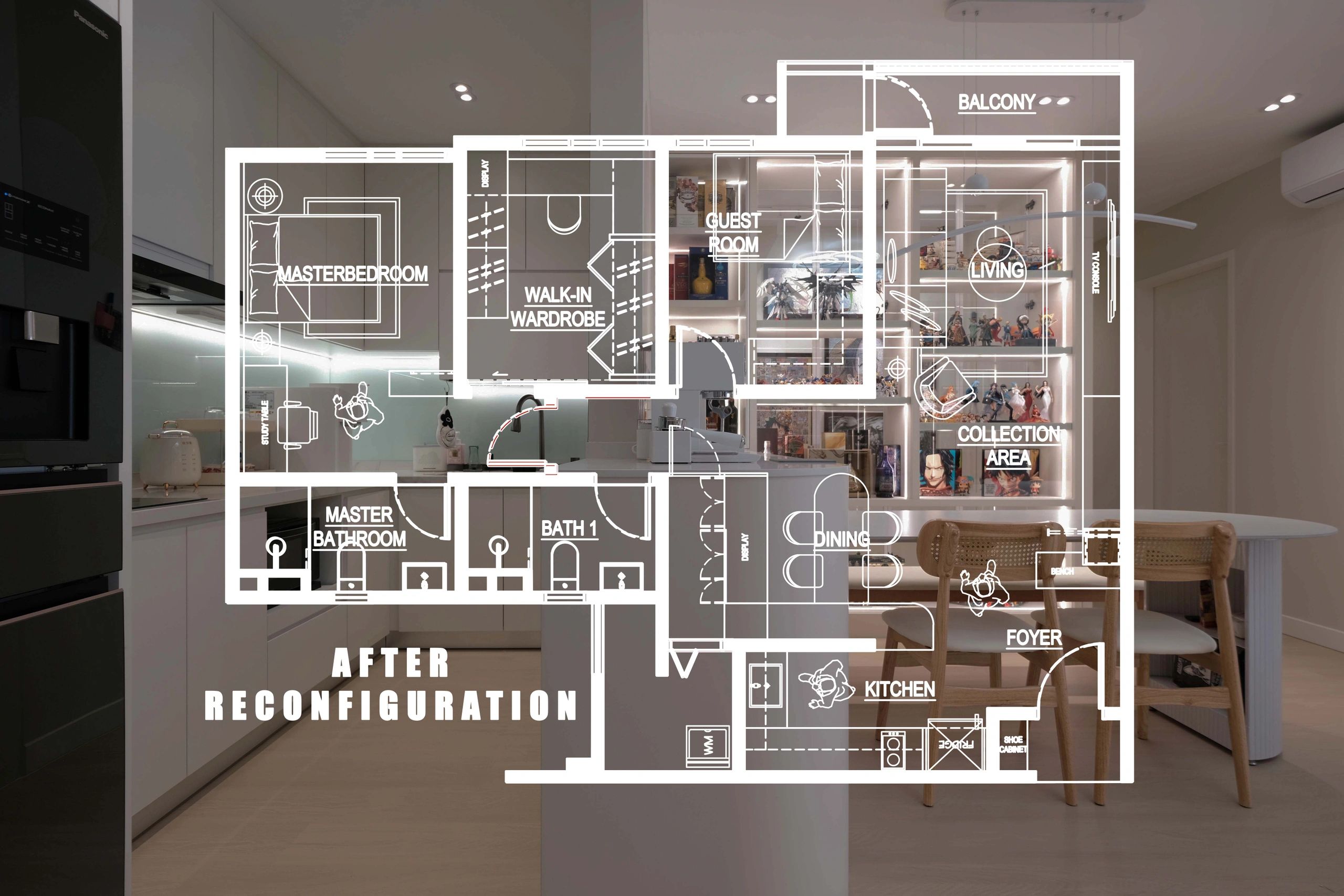 One of the rooms was opened up to extend the dining area, while a new doorway allowed the kitchen to fully utilize every wall. Through smart spatial planning, we also managed to tuck the walk-in wardrobe seamlessly into the master bedroom.